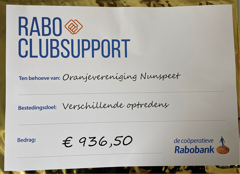 Het bestuur is hier heel erg blij mee! Het bedrag zal gebruikt worden voor verschillende optredens tijdens koningsdag 2026.