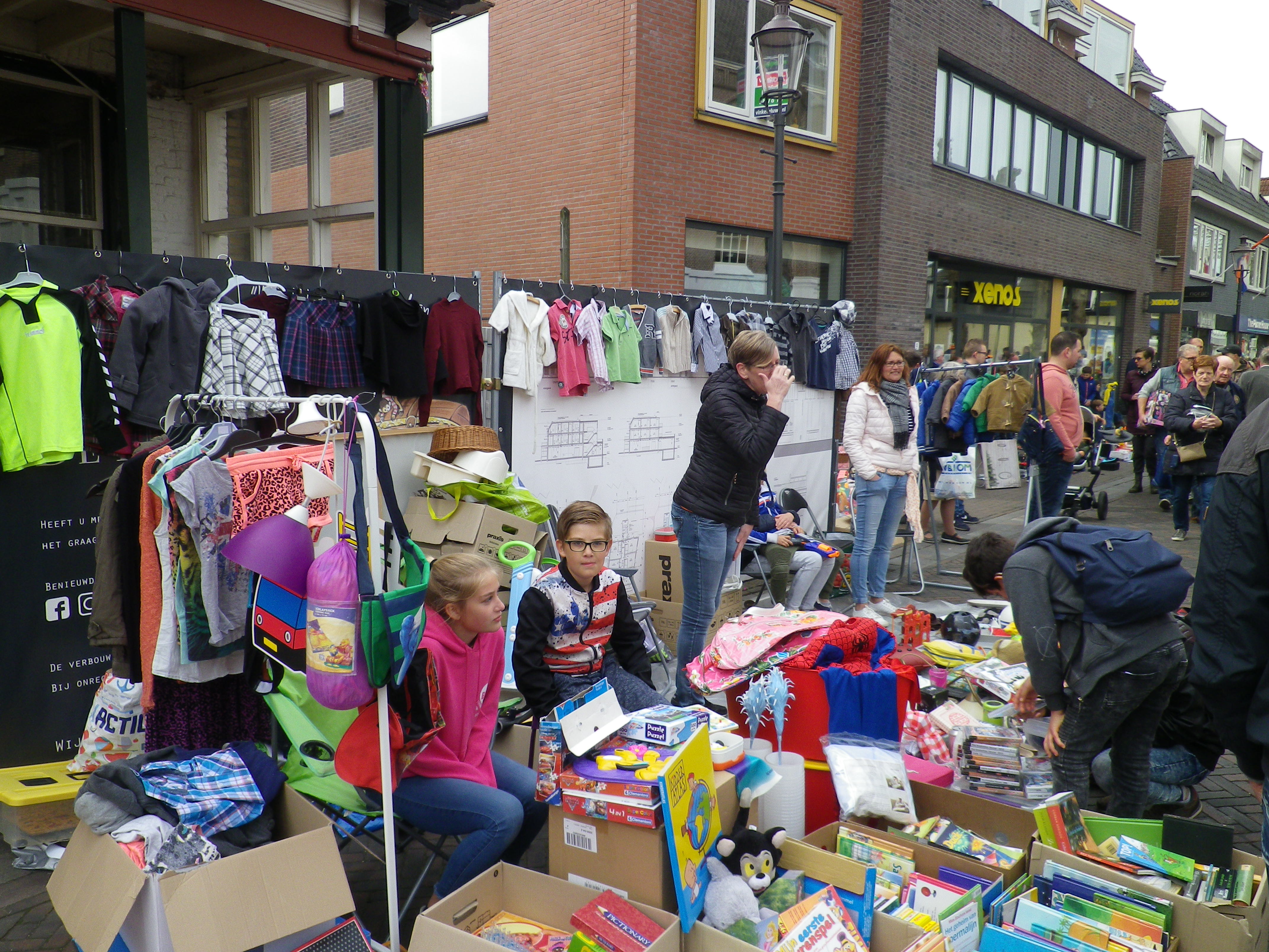 Basisschoolkinderen uit Nunspeet kunnen in het dorpscentrum van Nunspeet hun spulletjes verkopen.