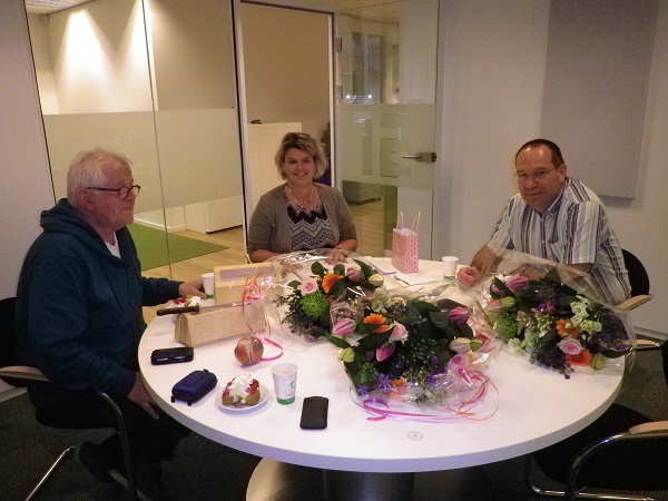 Het bestuur was even sprakeloos na de overval maar waardeerde het gebak, de bloemen en de waardering van het Servicepunt Vrijwilligers Nunspeet ten zeerste.