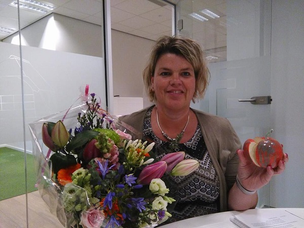 Aan secretaris/penningmeester Jacolien Ponsteen werd ook nog het “appeltje van Nunspeet” uitgereikt, in navolging van de landelijke “appeltjes van Oranje”, als extra blijk van waardering voor haar inzet voor de Oranjevereniging Nunspeet.