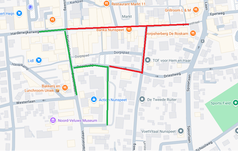 De vrijmarkt is op de Harderwijkerweg (na het hek Bij Frans tot aan de Wedo). Stationslaan (vanaf de Wedo tot aan de Westerlaan) en de Driestweg (tot aan het hek en inclusief de parkeerplaats Kerkendriest).
